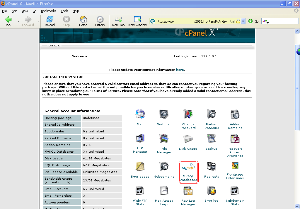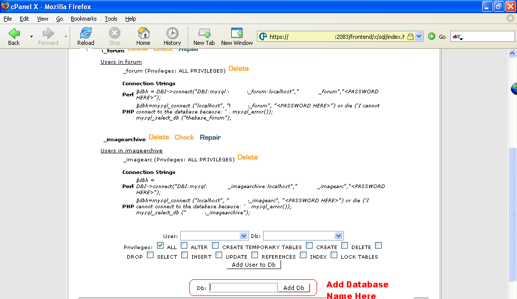 Click on "MySql Databases" and you should see this screen,