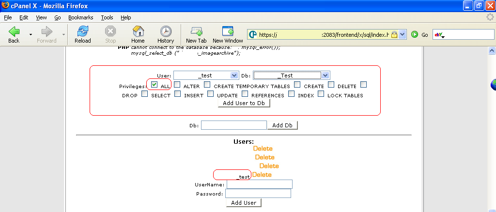 In the first drop down menu select the user you will add to the database, in this case it is "_test" then in the second drop down menu select the database this menu will be added to, I made a database called "_Test"