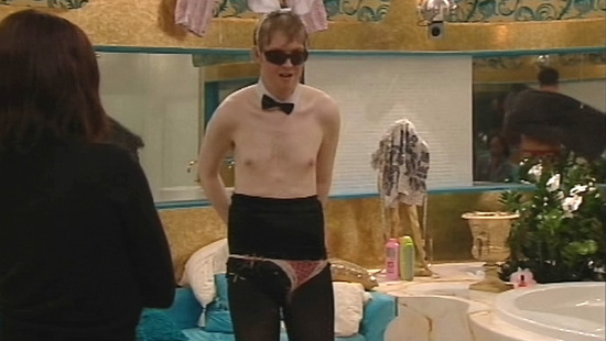 gahh! he's just a bloody weirdo. i've hated him ever since he said "WEST IS BEST" ugh, stay to the west please. ye, he says he likes womens clothes LOL, but it doesn't mean you just basically steal someone elses and wear them, if someone did that to me i'd bloody chap them, expecially from a stranger, that happened to be some weird ****** :S
