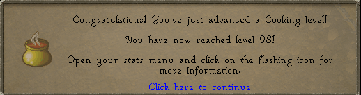 Overall, I spent 3M from 89-99 cooking, but from 4 days of ep I actually gained 1M, so technically it was free! GF Jagex