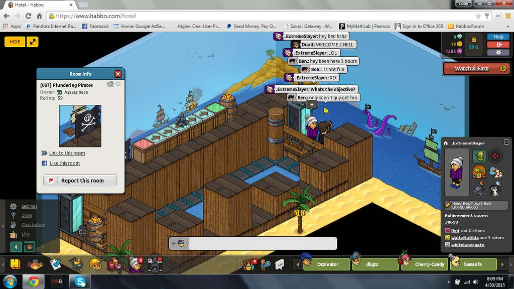 Well calling it quits at room 87, I'm disappointed in myself but this room is filled with lag and it's 1 person at a time and there's over 10 people in the room.