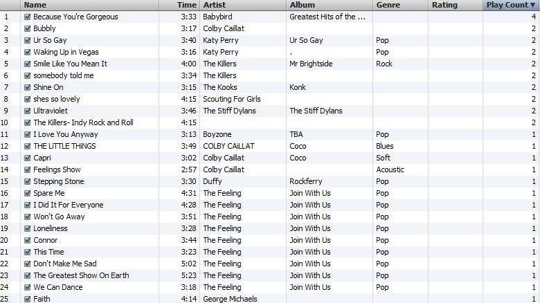 Bare in mind my first ever playlist was JUST Avenged Sevenfold and System of a Down, so the top 25 were played alot... now I have ALOT more songs on it... like over 400.