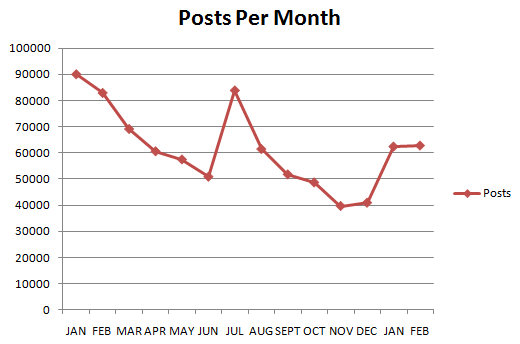 Those of you that like statistic things, there were a total of 62779 posts in February which is over 10,000 more than the amount we got in some months in 2009.