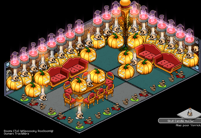 If you see a good HabboWeen Themed Room, then either post the details (room name and owner) below, post a screenie, or PM me.