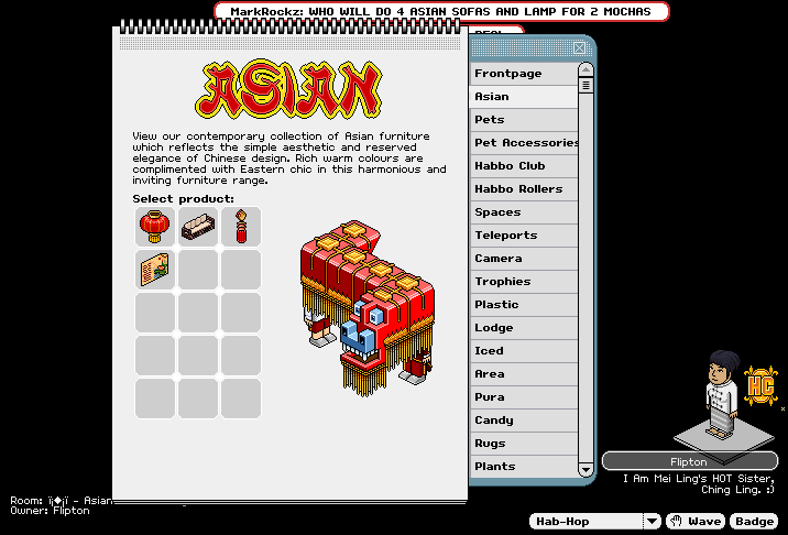 Just thought you guys would like to know the posters are going for around .5 of a hc and the lamps and sofas are going for 1 hc. God so many people want them . o.o