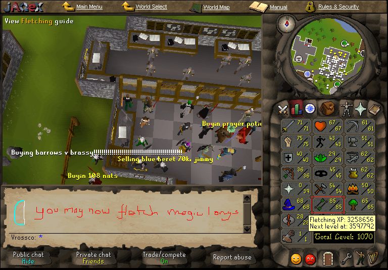 missed the screenie, but it should be in my sig, got 85 fletching at last