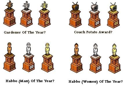 Yeah there alright, I like the first set but the rest are ok. I giva 7/10. Ive done an alt of a habbo trphie before, of my habbos head and you gotta add the shine to it to make it look real good.