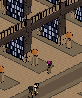 I used the Archive Bookcases from my old furni range. By the way, the purple haired guy is my character, so don't ask why theres a purple haired Jedi. I know the spheres are meant to be faces of famous Jedi, but that was too hard so I just made them into spheres.