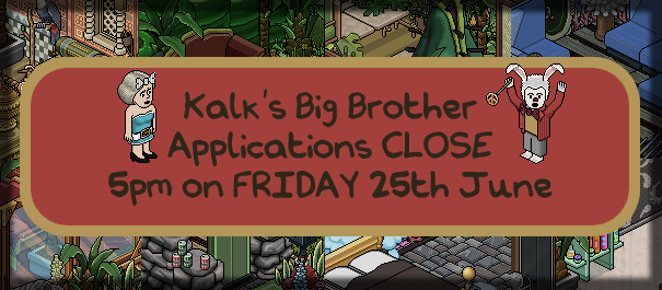 That's right, just under TWENTY-FOUR hours until Kalk's Big Brother VIII: Happily Never After Applications will CLOSE! Do you have what it takes to become the latest batch of housemates to enter the most famous house in the country?