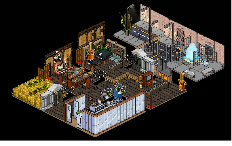 This is the entrance - probs not the best enterance in the world but I can't afford it coz i spent loads on the rooms lol. The wired furni open and closes the doors but it breaks :/.