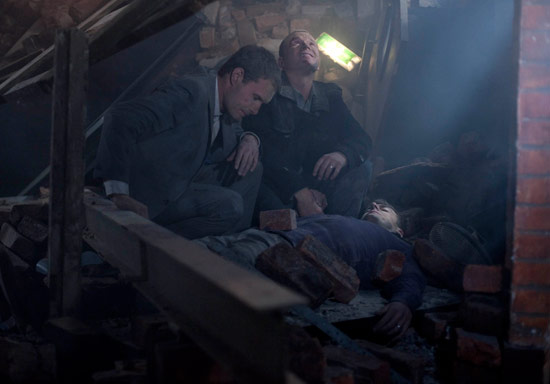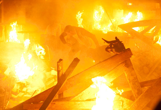Nah, the viaduct on the Corrie set with a tram on top collapses and everything catches on fire.