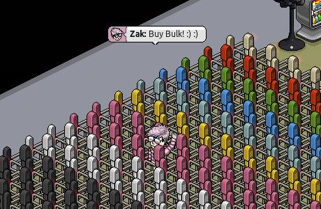 Once dominated as the main centres of trade in Habbo, these trade rooms are still a good way to buy items you desire cheaper. Although not as many people use them anymore because of the introduction of the marketplace and events. Gone are the good old days of Sukia's and Ostinato's trade rooms