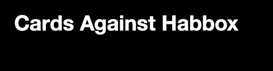 Based on the card game "Cards against Humanity", Cards against Habbox is a forum based card game with you, Habbox and Habbo as the core features. You are given a hand of "white cards" that consist of answers. Each round a "black card" will be revealed and you must respond with the funniest or most clever card you have in your hand, whatever your approach to that round may be. A secret assistant to me will be given all of your responses anonymously and will pick the one they think is the best. So for example: