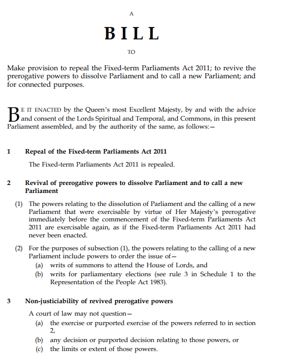 Repeal of the Fixed-Terms Parliament Act (2011)