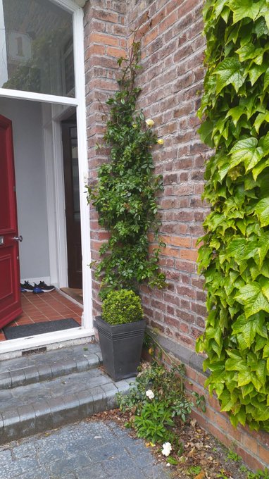 I posted a while ago I was training a number of rambling roses up the house/trees, and here is my Alberic Barbier rambling rose that's been in less than a year and is already about 11ft tall. Will eventually reach heights of 20-25ft and has beautiful white/yellowy apple-scented flowers.