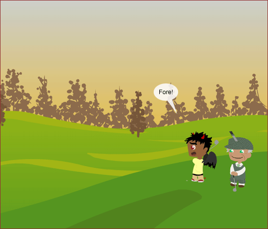 Satan and Fake god play golf.
