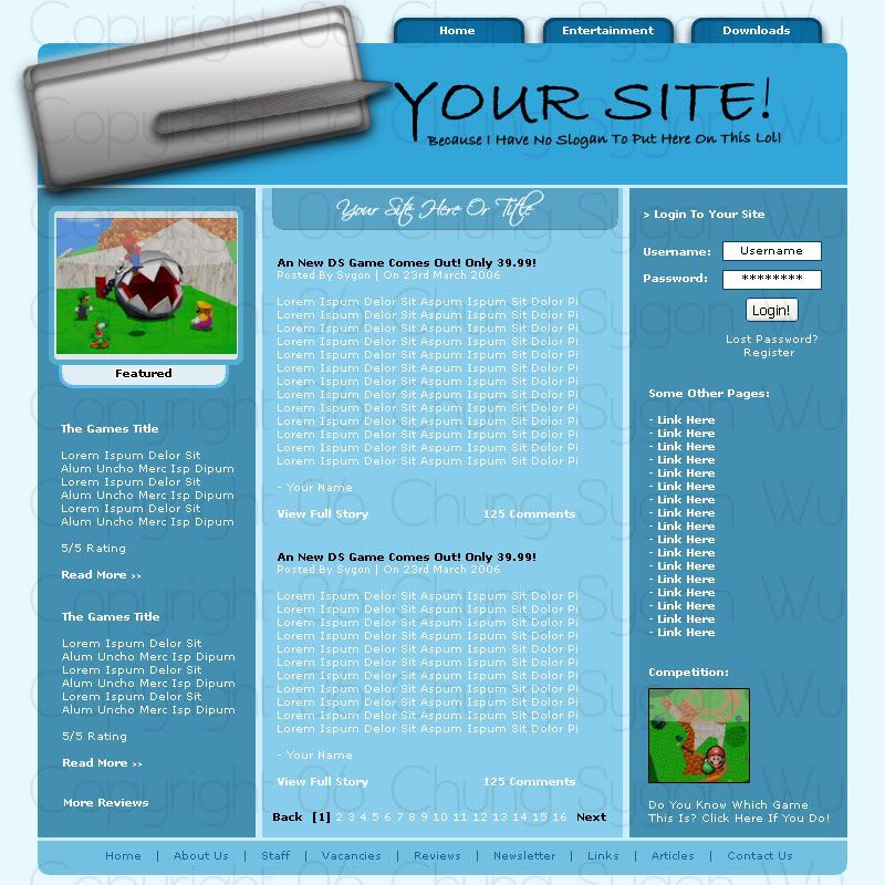 This template I made in the theme for an nintendo fansite/club but can be customized to your liking and in anyway completly or