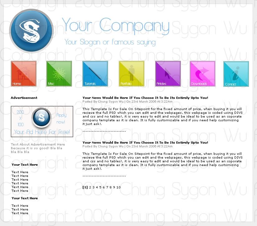 This template was originally created for my blog but I decided not to use it it is coded using Xhtml, DIVs, and css and is expandable