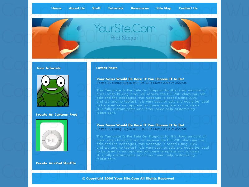 This template was made as an clan template but can be customized it is not coded but I will code it for 1.50Pounds Using Xhtml
