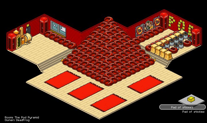 i like the room but the downside to it is its jsut like ice Ts throne pyrmid and blinkeys hc one even though you go inspired by it urmm try filling the walls with pods ?