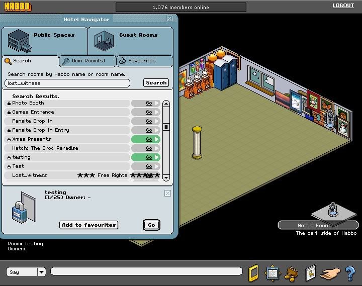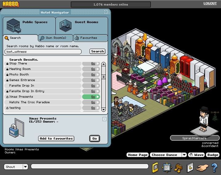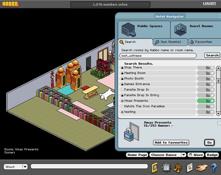 If you're wondering how I got in these rooms, I have a wardrobe tele linking into Lost_Witness's Xmas Presents room. It it located in my 'caramel' room. I followed some teles and ended up into the testing room.