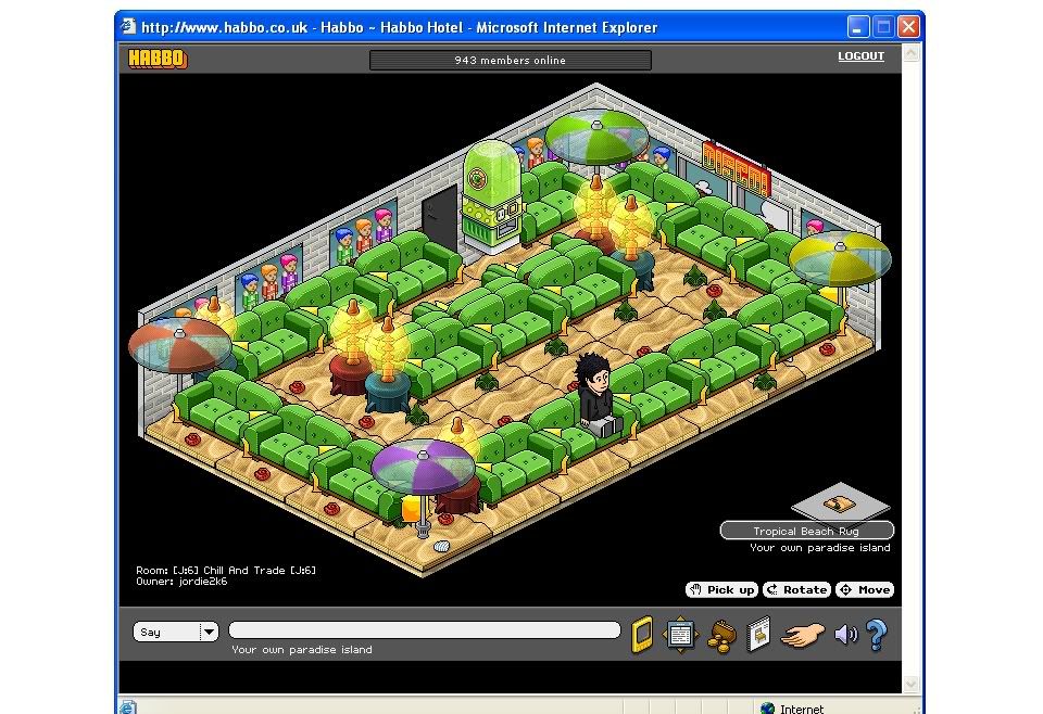The floating furni doesn't look that good, if you have to have it floating because of a glitch, just float it a little bit off the floor so it isn't that obvious. Also, the coke machine seems random as you seem to have a beachy theme, so maybe use a ice-cream machine? And, the wallpaper doesn't matc the sand patchs, maybe use the clouds instead.