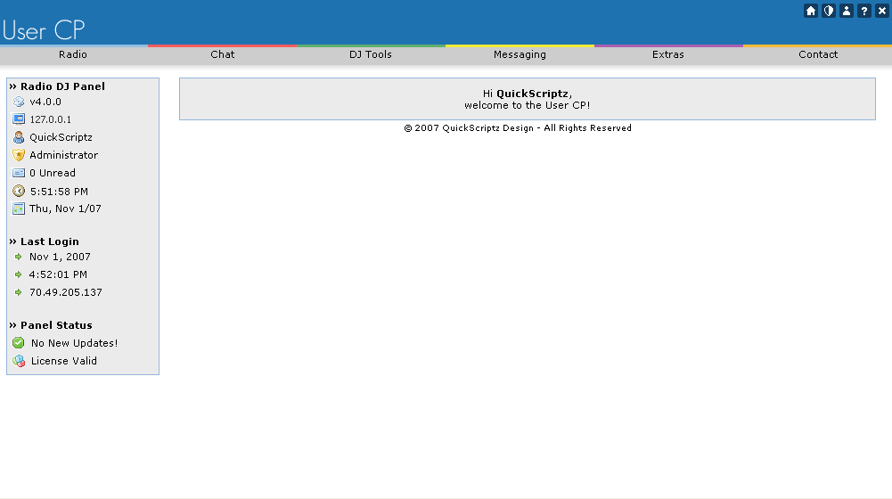 Now you might not have heard much about the Radio DJ Panel in the recent months but it is still very widely used by many sites and v4 (version 4) is currently under development! Now a few people have gotten a quick sneak peak of the new panel and what I've completed so far but I figured that I better give the rest of you a preview so I could get some input!