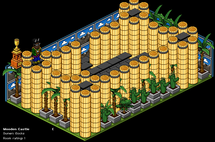 One of the oldest rooms, one of my favourites also. Many think it looked hard to make, it actually wasn't.. once i had all the stools - that took over a month and most of those were from the catalogue. Wooden castle; it's a castle. made of wood.