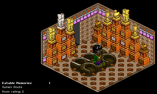 I had a large collection of mice. And my trophies were just sat in a store room, so created this. Eatable memories; it's a memories room, and the mice or chocolate so you can eat them.