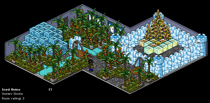 You can sit inside the igloo too. Iced Ruins; its made of icy stuff and the castle is a ruins with the cobbled floor helping that theme.