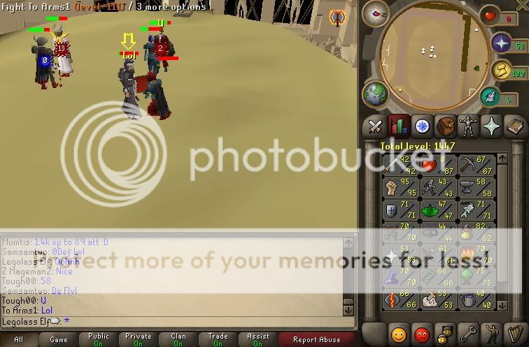 lol , i just went in a battle he was like lvl 70 or somthing he had melee turned off and i didnt know and he was like attacking for me 10 min's with his c'bow saying he owns me :[