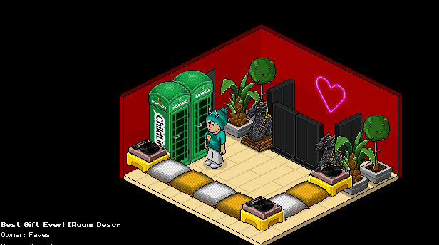 I've pretty much quit Habbo & Habbox, but I still stop by every once in a while. If you knew me, send me a message saying hi, and I promise I'll get back to you! Miss all you wonderful people who saved me from boredom all those years.