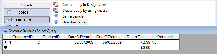 Well anyway mine for a DVD shop, and there is a rentals table which takes the ID of the customer who made the rental and the ID of the product that is being rented.