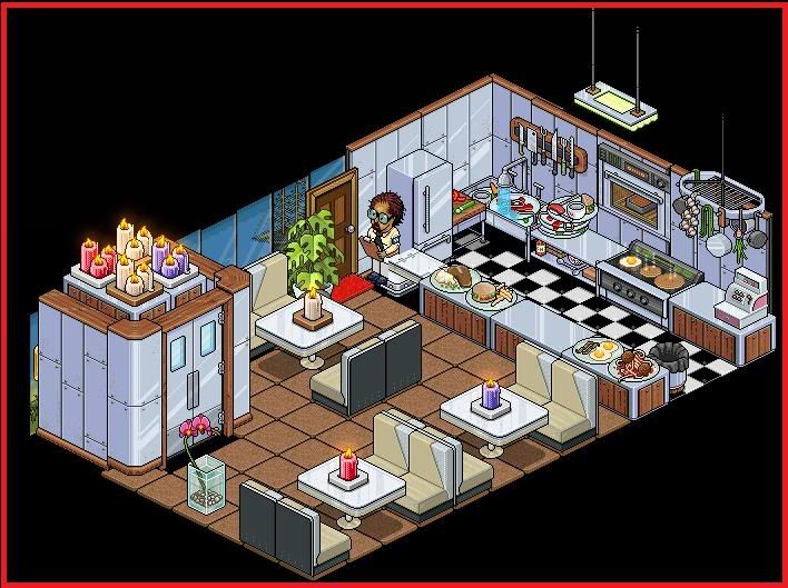 Helloo. This is not a room I like, but I thought I would post it incase any of you people who don't play habbo, want to see some kitchen furni in action. The Inspector thing creeps me out btw