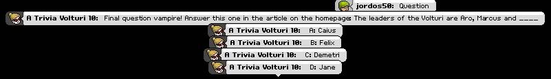 Once you make it to the last quest room, a Volturi member will ask you a final question. Please enter your answer in the competition form below.