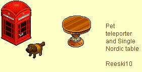 Yes this was just a quickie, I was bored, so I decided to make a nordic table smaller (probably a few pixel errors) and also, a pet sized teleport (pet included) Just in case habbo ever decide to teleport pets as well as habbos.