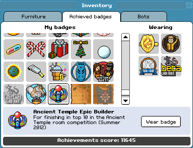 For people who logged in have entered the comp; you will either get one of three badges on the home screen. It seems like habbo don't give you them now, you just redeem it when you so wish.