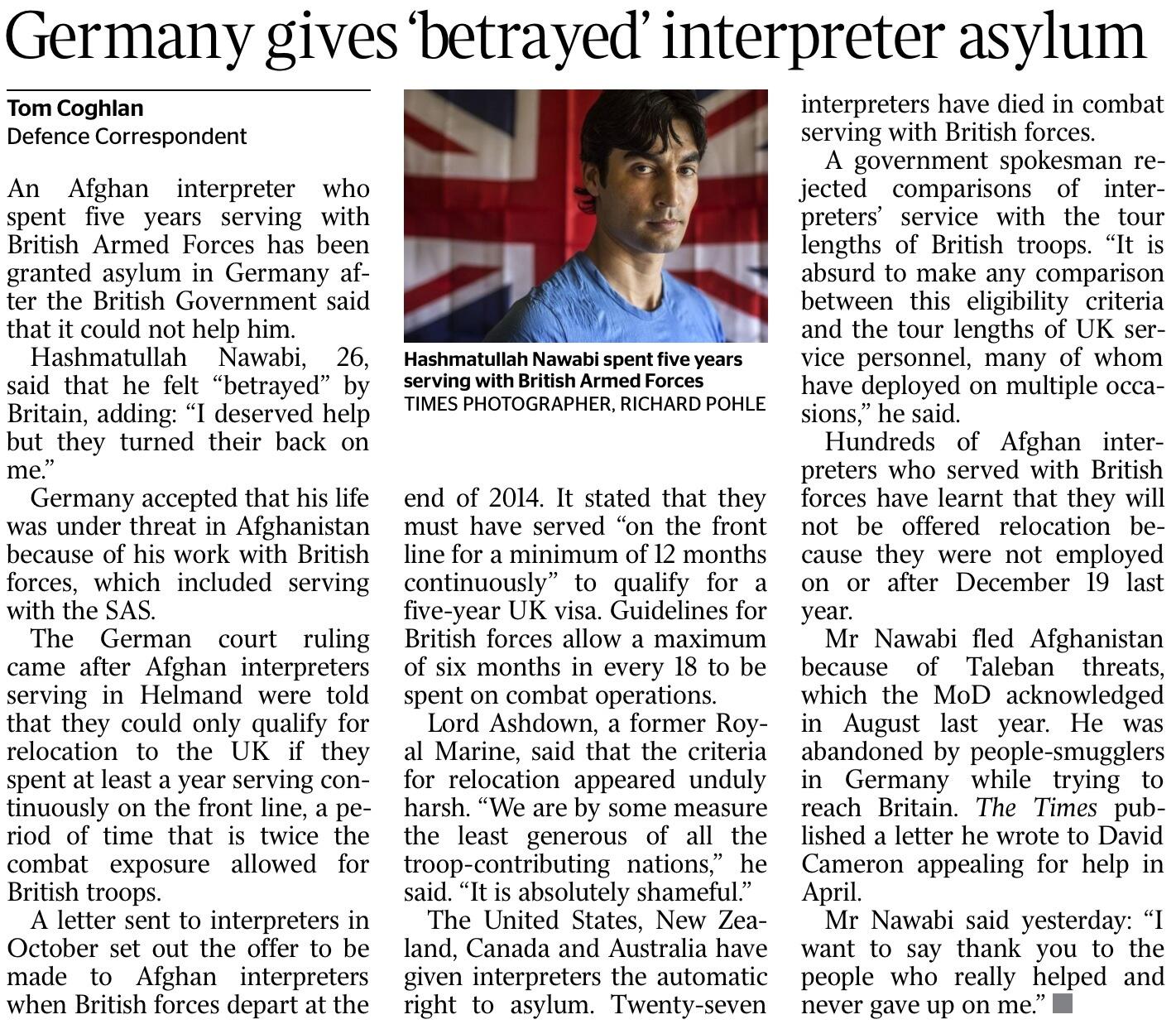 Germany grants asylum for 'betrayed' interpreter after UK rejection