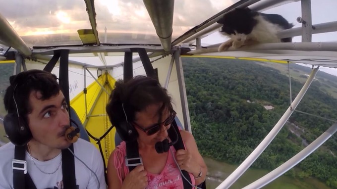 Video posted by Romain Jantot shows him taking off from a flight school near Kourou in French Guiana, South America, with a female companion.