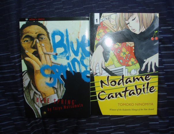 Haven't read Blue Spring yet but Nodame Cantabile was a little disappointing. The anime is one of my all time favourite series, but I guess a manga based on music doesn't work as well, eh. The art is also quite simplistic, not very much shading. Although it's one of my favourite series ever, I probably won't continue with the manga.