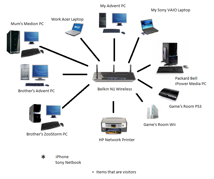 This explains the network at the moment. Not sure how much ethernet we have in the house but its less then 30m.