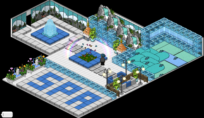 Wow that's really cool! It does sort of have the feeling of a public room to it. I love the blocked seating areas, and would certainly use this room if it was a public room.The marble tile things look great too, and the room feels so light and spacious. I love it!