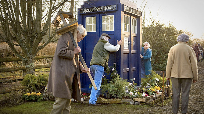 I’ll be a story in your head, but that’s okay, because we’re all stories in the end. Just make it a good one, eh? Because it was, you know. It was the best. A daft old man who stole a magic box and ran away. Did I ever tell you that I stole it? Well, I borrowed it. I always meant to take it back. Oh, that box, Amy, you’ll dream about that box. It’ll never leave you. Big and little at the same time. Brand-new and ancient and the bluest blue ever. And the times we had, eh? Would had…Never had. In your dreams, they’ll still be there. The Doctor and Amy Pond and the days that never came.