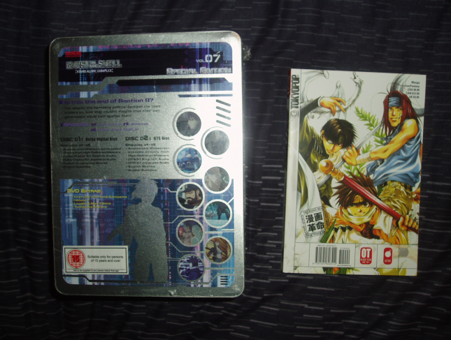 On another note, I got the last volume of Peace Maker on friday but haven't been able to take any pictures because my dad was on holiday and took the camera with him. Also on another note, you may remember me mentioning I bought the Ghost in the Shell SAC 2nd GIG boxset but they sent me the wrong DVD. Well, I sent it back and the correct DVD is now on it's way. :8 I know you all really want to see, but please hold in your urge.