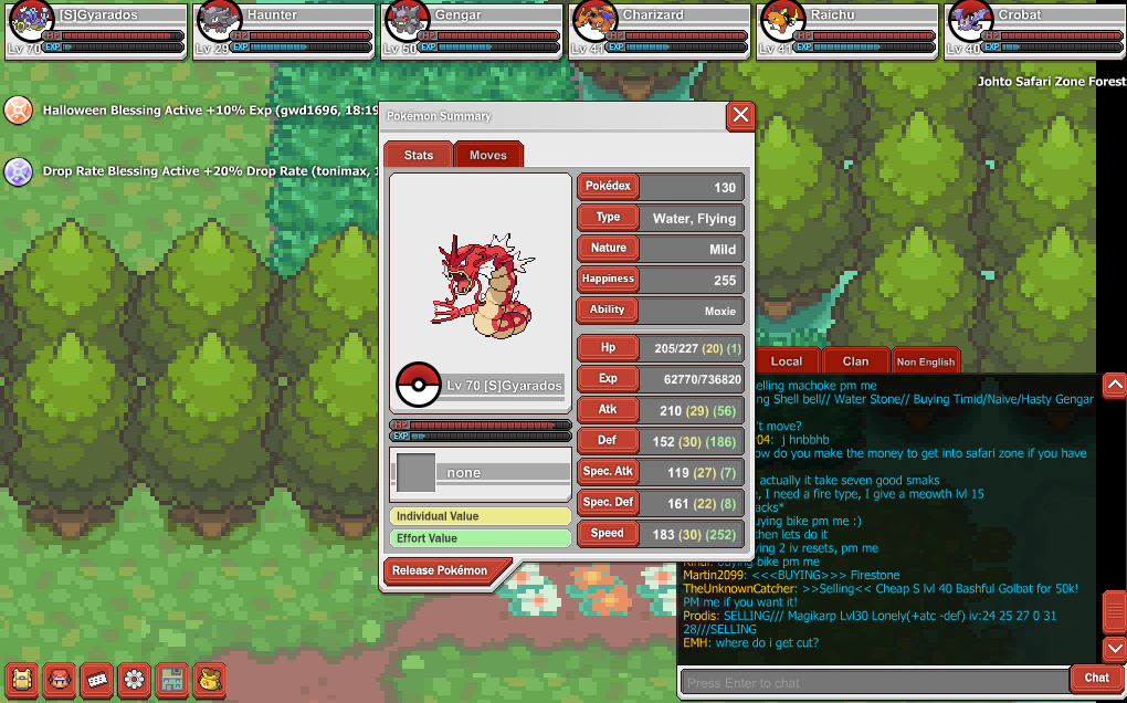 Yeah I've been on alot I admit but also at the same time I leave it open on the slim chance someone opens up a item bomb. It is exp yeah, gyarados is currently 73 now, also upgraded my gengar drastically- nature/iv wise.
