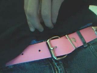 My belt is pink with studs tis very sexy. These pictures are of me wearing it...