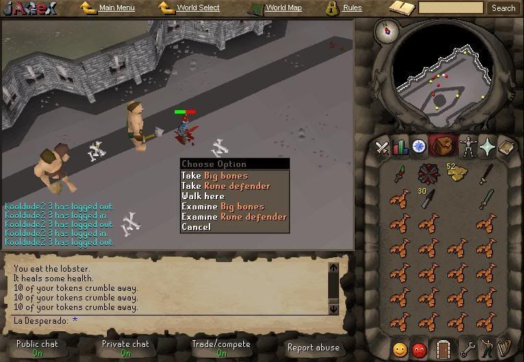 When you're back in jail, go north and head to the eastern part of the island. Then move south to Sergeant Garkor (Picture). Speak to him. He will tell you about Karam and the 10th Squad. He'll inform you that the 10th squad needs you to impersonate a monkey, so you must speak to the squad's mage, Zooknock.
