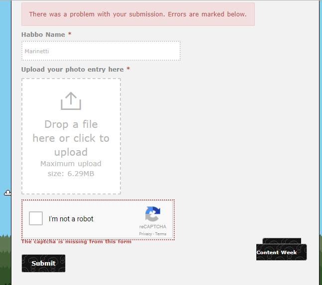 What's not working/broken?: I've run across an issue when submitting for Photography and other comps through the Habbox.com/content