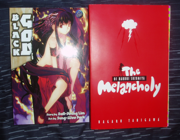 One manga, one novel. Black God volume 6 and The Melancholy of Haruhi Suzumiya. Black God was veeeeeery good. Around four chapters dedicated to backstory which at first I wasn't too bothered with but they turned out to be amazing. Then a few chapters with a fight between a cool anti-hero like character and an ultra badass, and a fantastic cliffhanger ending to finish it off. Actaully this was a brilliant volume lol. Haruhi, as I stated in the other thread, was surprisingly good. No, it wasn't good. It was awesome. Offers a lot more than the anime could. Can't wait for the second novel.