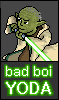 And finally, this banner that I personally don't like because of the englarged Yoda. I'm working on thinning out the lines on the Yoda though. I am, however, very proud of the text. I made it customly using parts of the Star Wars logo.